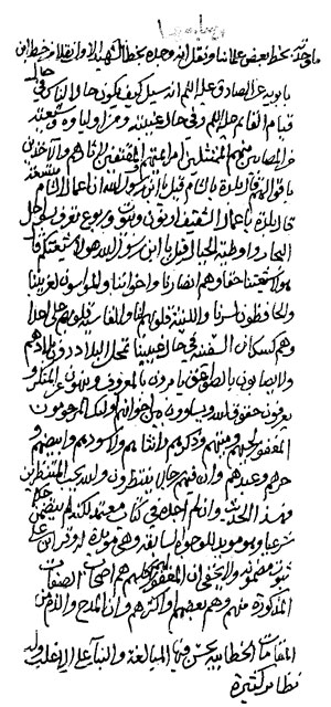 «سابعُها: ما وجدتُه بخطِّ بعضِ علمائنا، ونقلَ أنَّه وَجَده بخطِّ الشّيهد الأوَّل، نقلاً من خطِّ ابن بابويه عن الإمام الصّادق عليه السلام، أنّه سُئل كيف يكونُ حالُ النَّاس في حال قيامِ القائم عليه السلام، وفي حال غيبتِه، ومَنْ أولياؤه وشيعتُه من المصابين منهم، المُمتَثِلين أمرَ أئمَّتهم، والمُقتَفِين لآثارِهم، والآخذين بأقوالهم؟
